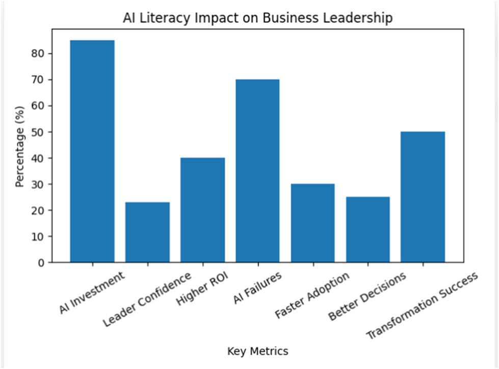 - Organizations with AI-literate leadership see up to 40% higher ROI